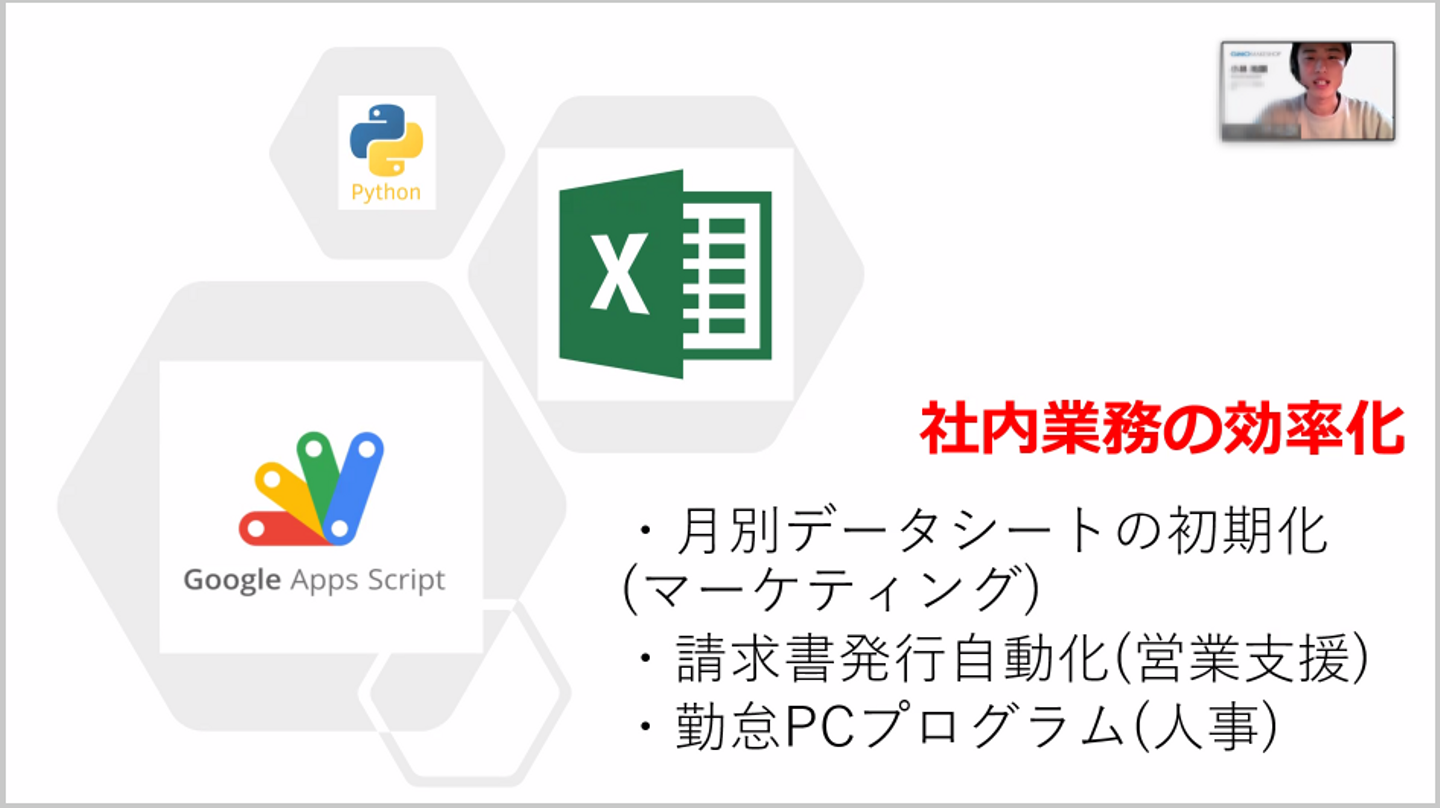プログラミングによる社内の業務効率化をサポート(マーケティングのデータシート初期化、請求書発行の自動化、勤怠関連のプログラミングなど)