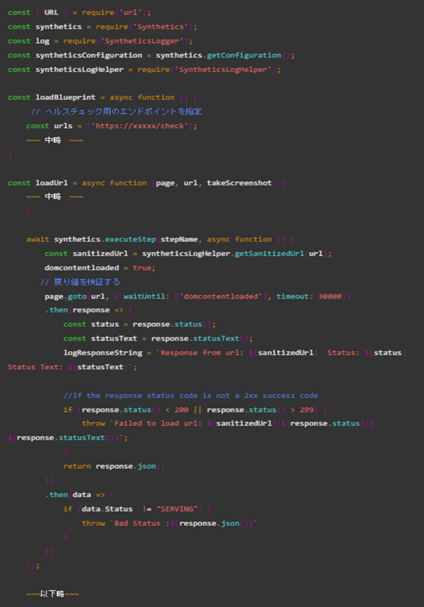 Synthetics Canariesを使用して、コンテナの外形監視を行います。 ヘルスチェック用のエンドポイントに向けて、リクエストを投げて、監視しています。 具体的に設定しているの以下の通りです。