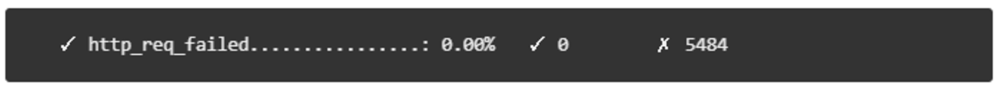 http_req_failedはリクエストの失敗率とthresholdの定義に対する合否を表示しています。