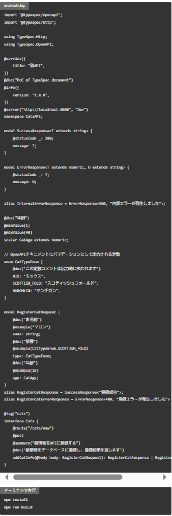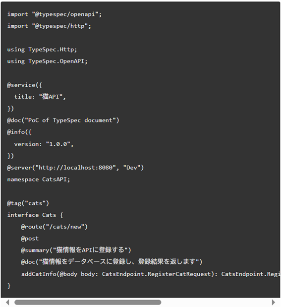 - TypeScript のような構文で OpenAPI のスキーマを定義する TypeSpec