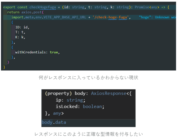 次世代EC管理画面ではSPAを採用しており、バックエンドとのやり取りが頻繁に発生します。やり取り方法にGraphQLを使うエンドポイントは graphql-codegenを用いた型定義が存在しますが、REST APIへのリクエストには型定義が無く、anyになっている状況がありました。しかし、型定義が無いとなると、正確に何をやり取りしているかがわからず、改修やリファクタに不安が生まれて時間がかかってしまいます。今回はこの問題の解消に取り組みました。