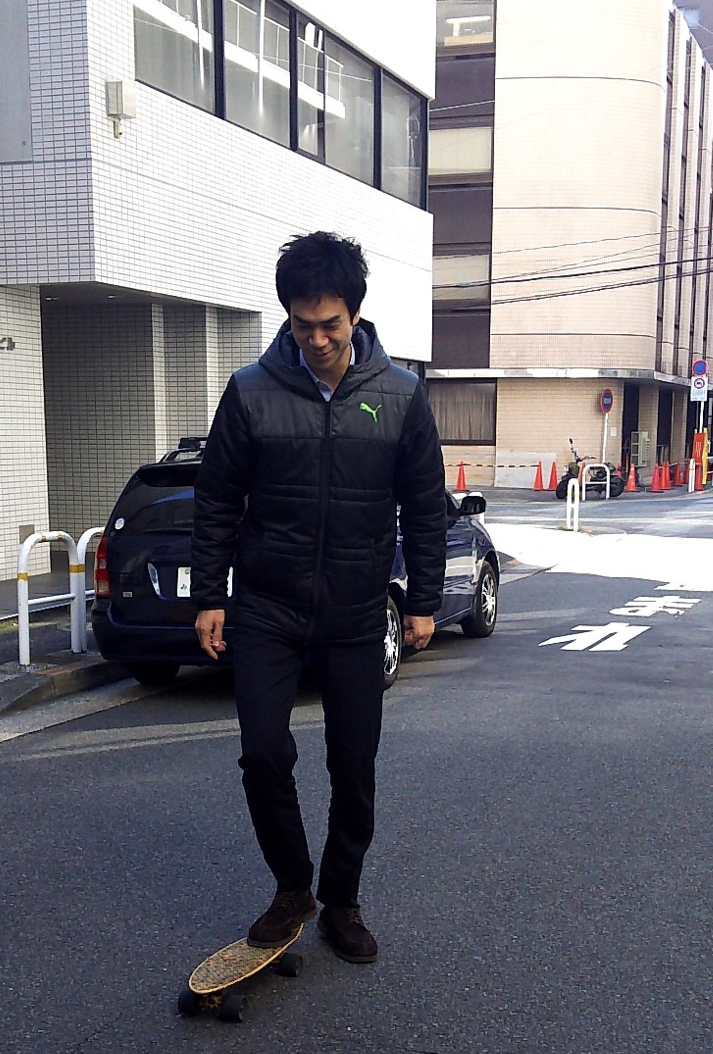 社長の話によれば移動効率を考えてスケボーを支給しているとか・・・ そ、そうか!確かにコンビニに行くときとか、便利っす(´▽`)!