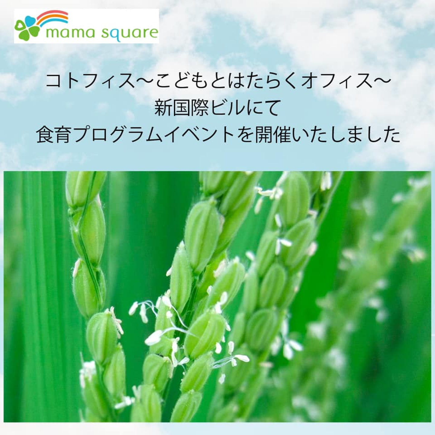 コトフィス~こどもとはたらくオフィス~ 新国際ビル内にて食育プログラムのイベントを開催いたしました | 株式会社ママスクエア
