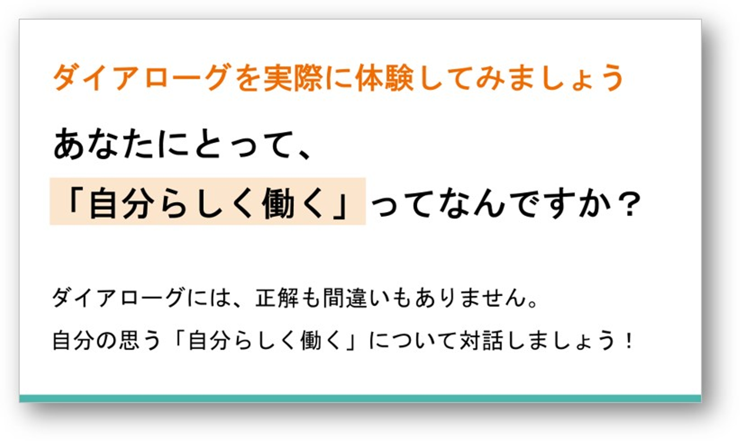 事業所で始めたこのダイアローグが日常にも根付き始め、気づけば休憩時やランチタイムなどに自然と対話が生まれるようになっていきました。