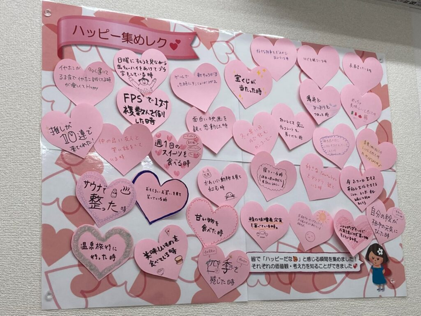 「趣味を語ろう!」「ハッピーだと感じる瞬間は?」「100万円あったら何に使う?」