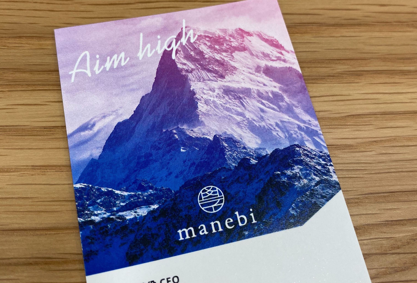 *manebiの名刺に描かれる空想の山の絵画がカラーイメージ