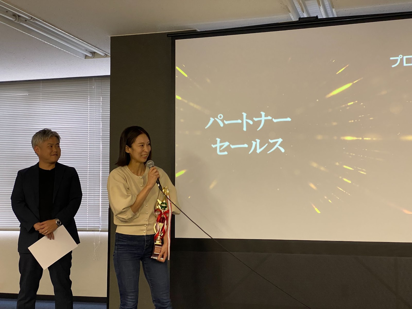Sync-Up Summit(四半期ごとの全社会議)で表彰されるパートナーセールス部。復帰後もバリバリ活躍されています。