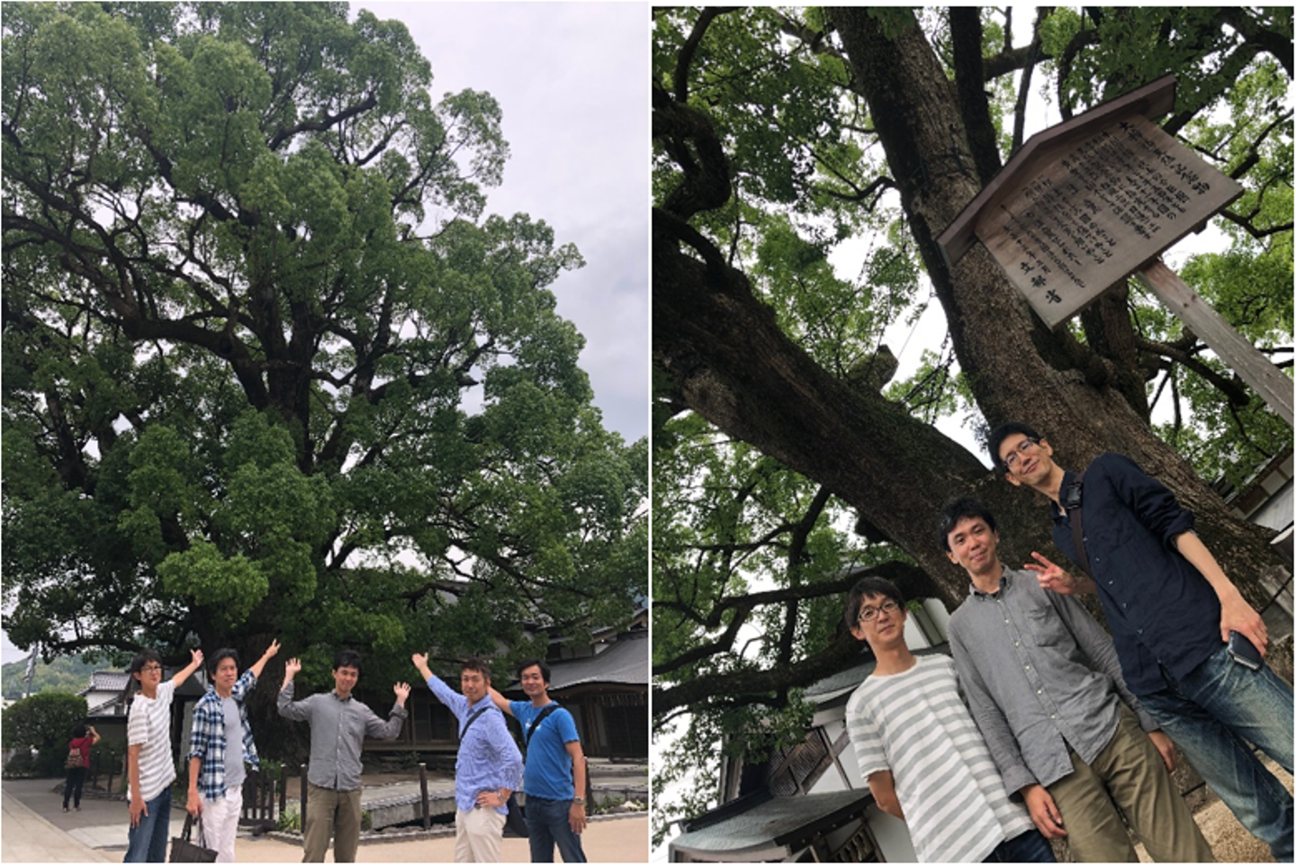 本殿の裏手には国指定天然記念物に定められている「夫婦樟(めおとくす)」があり、樹齢1000年~1500年とされるパワースポットなので、メンバー全員であますことなくパワーを受け取っておきました。これで仕事のパフォーマンスが更にアップすることは間違いないと思われます。