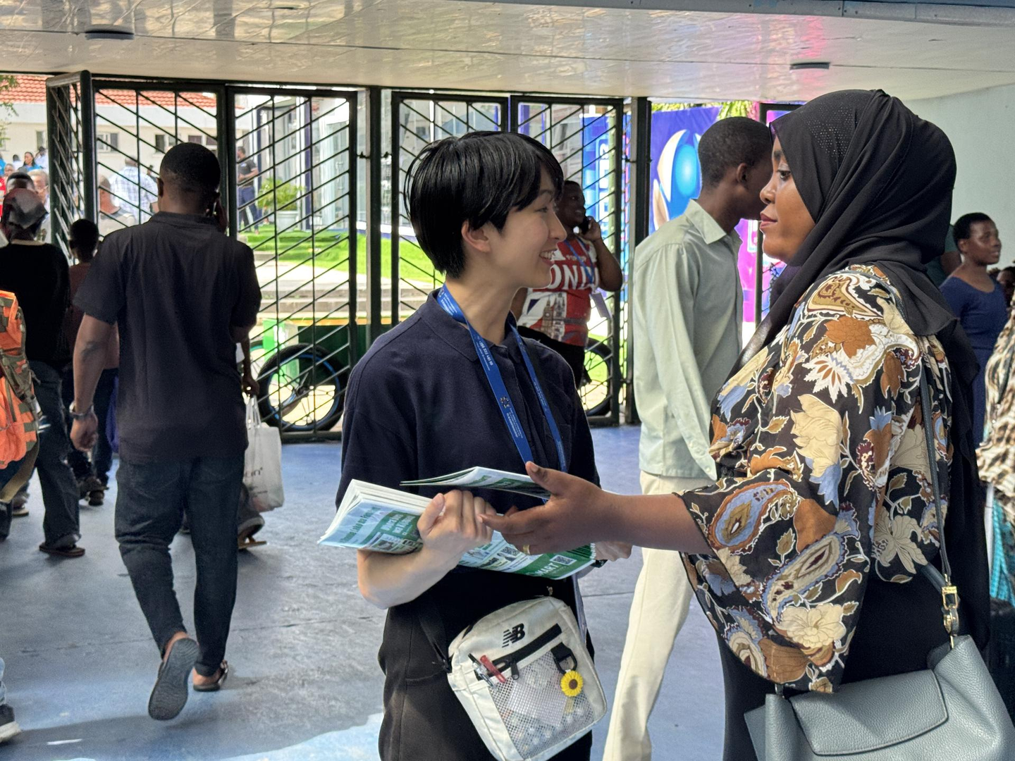 会期中、MEのブースにも連日多くのお客様が訪れ活気にあふれていました。ブースの前で「Karibu!(ようこそ!)」とスワヒリ語で声をかけたりすると、笑顔で立ち寄ってくれて、現地の方々との距離が縮まりました。特に展示品のトラクターが到着してからは、来場者の方々の視線が一変しました。お客様が実物を取り囲み、興味津々に質問をしたり、運転席に座って状態を確かめる方もいて、農機具に対する強い関心を肌で感じた瞬間でした。