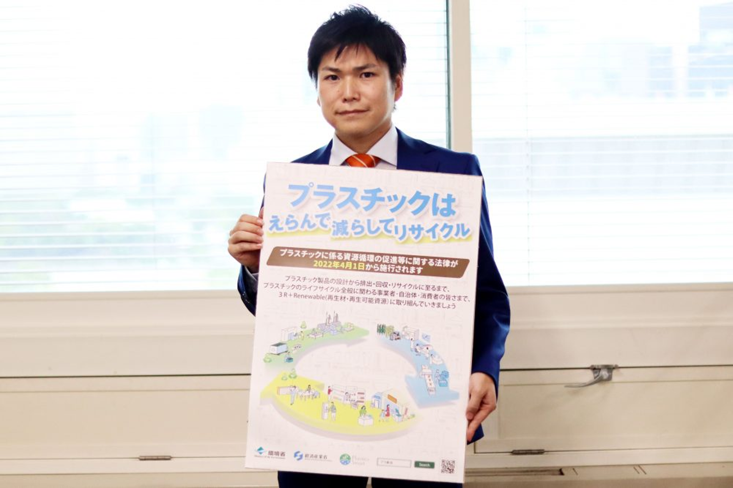 現在は環境再生・資源循環局 リサイクル推進室に配属し、プラスチック資源循環や脱炭素社会にまつわる啓蒙活動や新しい法の発信などをメインに行なっています。