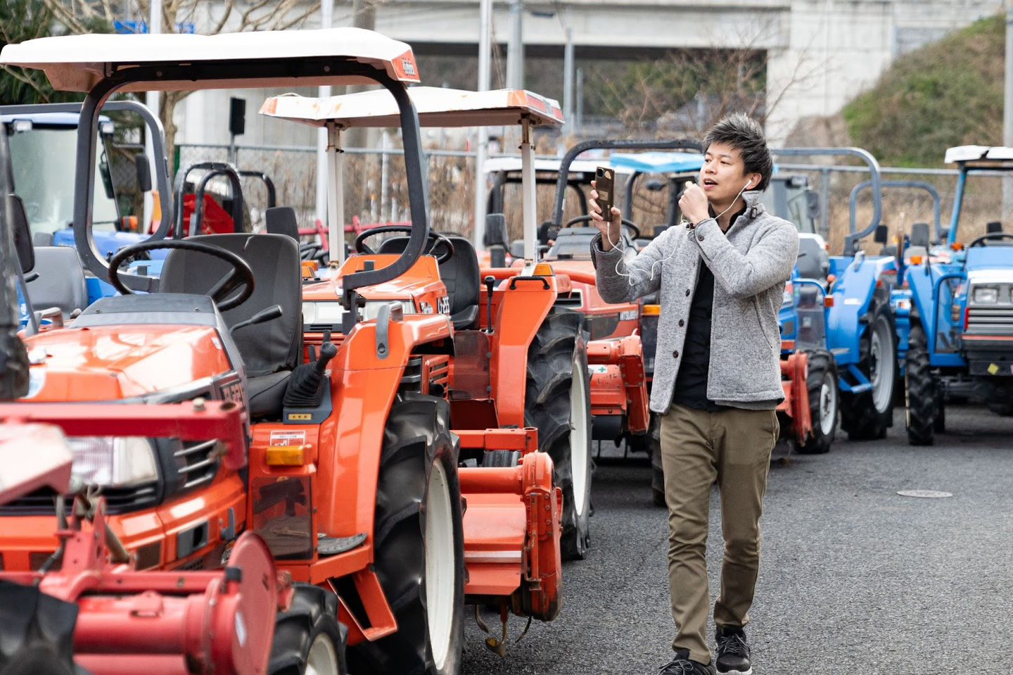 海外の顧客に向けて、オンラインで農機具を映すKevin