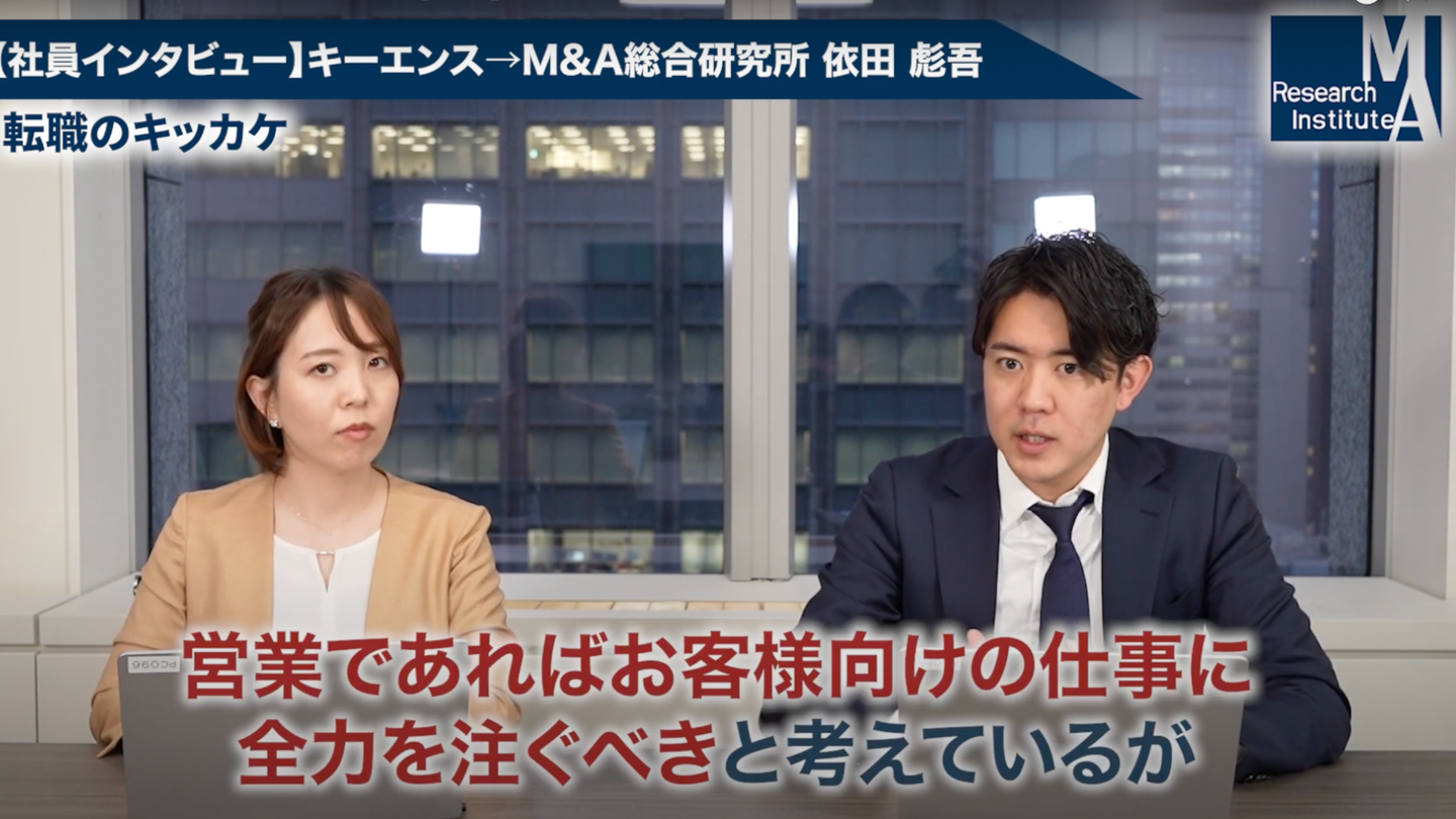 営業マンとして、体力的・精神的に厳しいながらもやりがいを感じていた依田さんが、なぜM&A仲介業に転職を決意したのか、M&A総合研究所への転職を決意した理由、現在の業務についてなど詳しくお話を伺います。