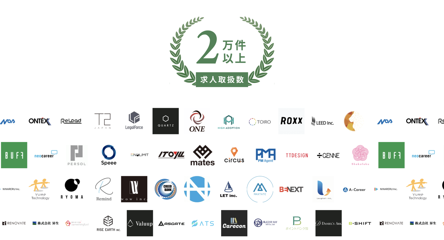 求人取扱数を強調している箇所。ロゴが左右にスライドし、動きを持たせています。