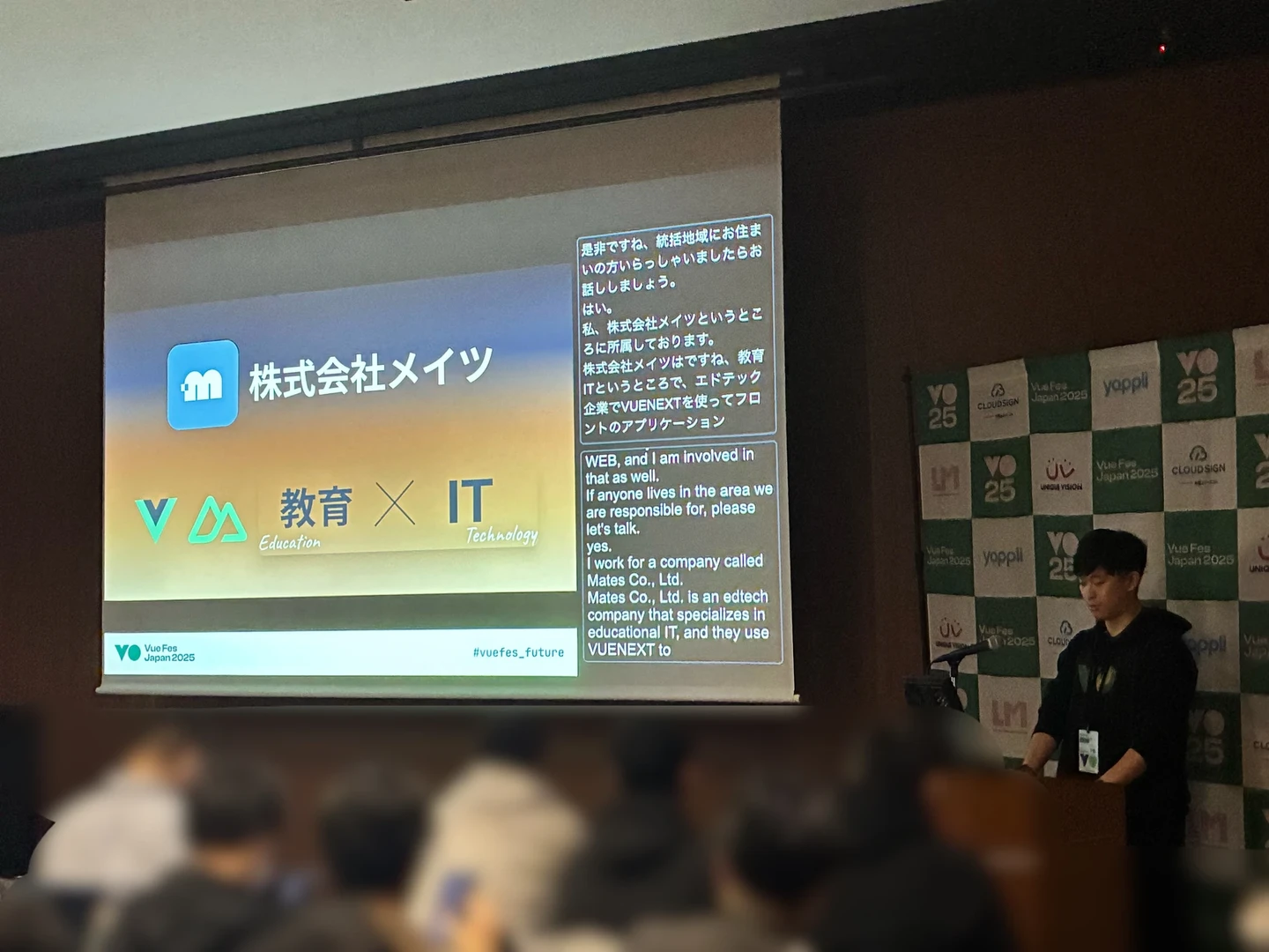 メイツの技術を借りて発表することができ、憧れだった v-tokyo での登壇を実現することができました。