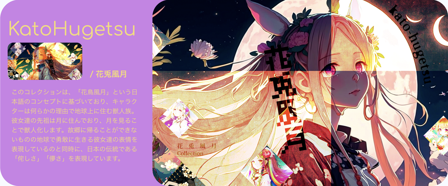 Crypto Shinovi や Shinovi usagiなど10点ずつ販売したリリース初期の作品は、即日完売。SUSHINOBI100点は2週間で完売、2023年4月17日に販売を開始したばかりの花兎風月は2日で80%が販売されています!日本文化を基調としたアートやアニメイラストが海外からの人気が高く、コレクションやホームスクリーン、SNSのアイコンにしたりなどで使用してくださっています。