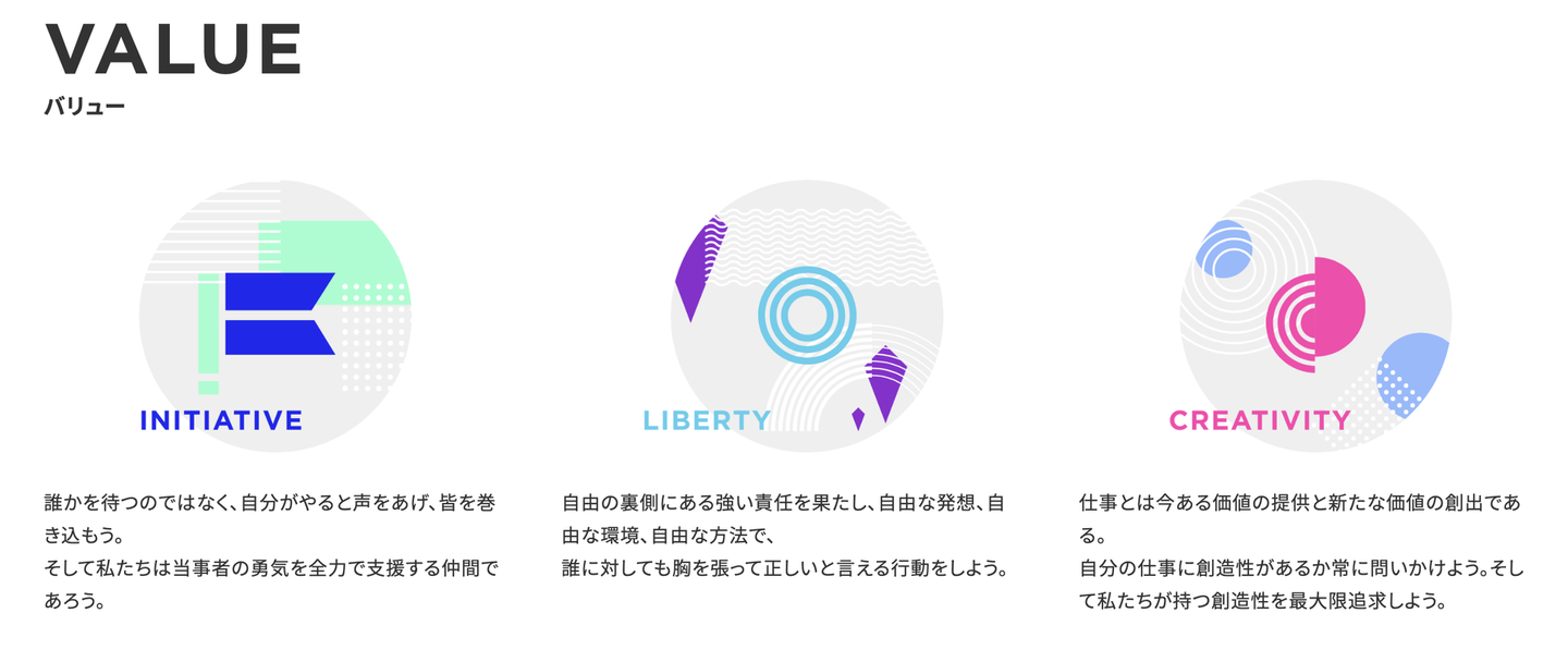 3つのバリュー「Initiative・Liberty・Creativity」を軸に行動する人が多い会社だと思います。