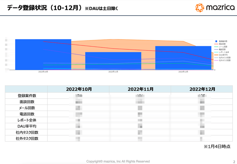 定例ミーティングでは「プロダクトの利用状況」を用意し、「導入目的・運用目標」や「先方の現場感」と照らしながら、とるべきアクションを検討します。