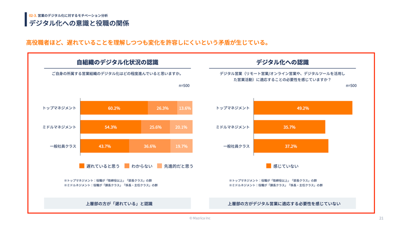 日本で行われている営業組織・営業パーソンに関する調査は、アンケートの「集計」結果を公開するものが多く、「分析」まで踏み込んでいるものは多くないと思います。