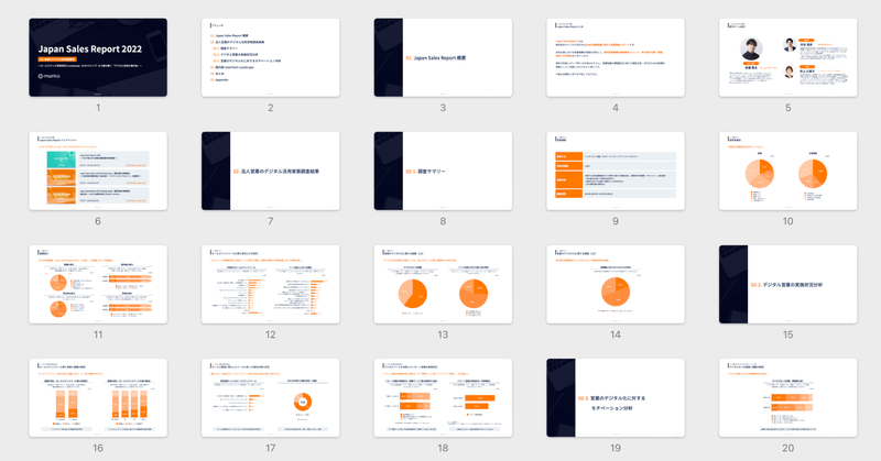 Japan Sales Report とは、株式会社マツリカが刊行する日本の営業組織に関する実態調査レポートです。日本企業における営業組織の発展を目的とし、国内営業組織の最新動向/トレンド、取り組み内容、課題、未来への示唆をまとめています。