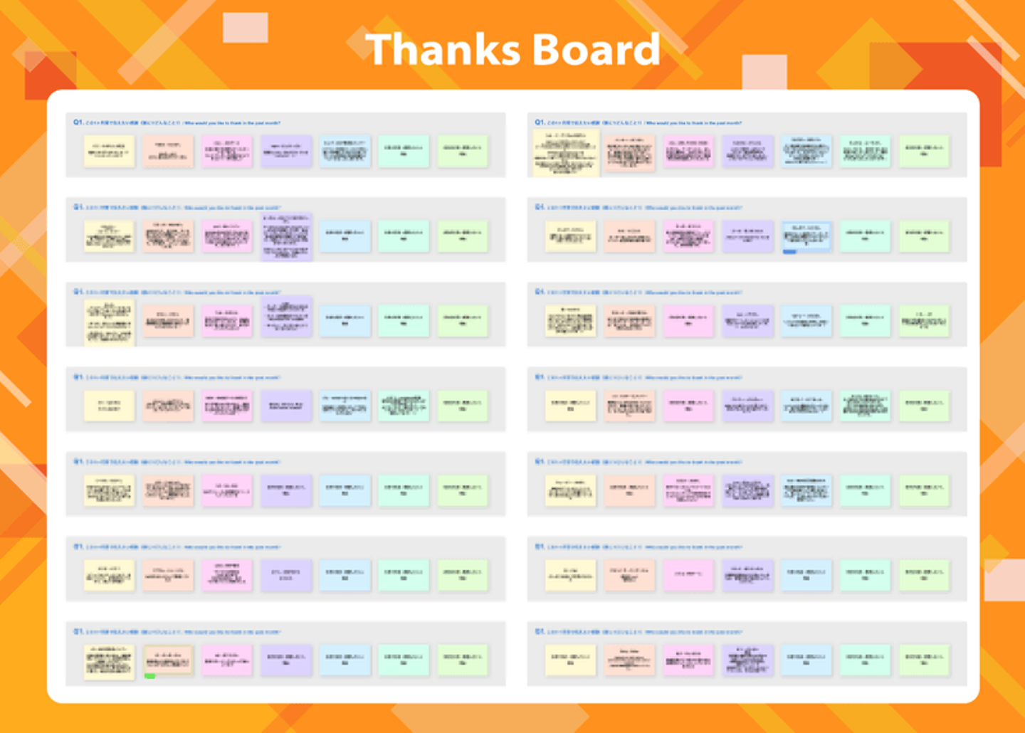 マツリカでは「賞賛文化」の浸透を重視しており、グループワークで挙げられた「この1ヶ月間で伝えたい感謝」の内容は全社に対して即座に共有されます。