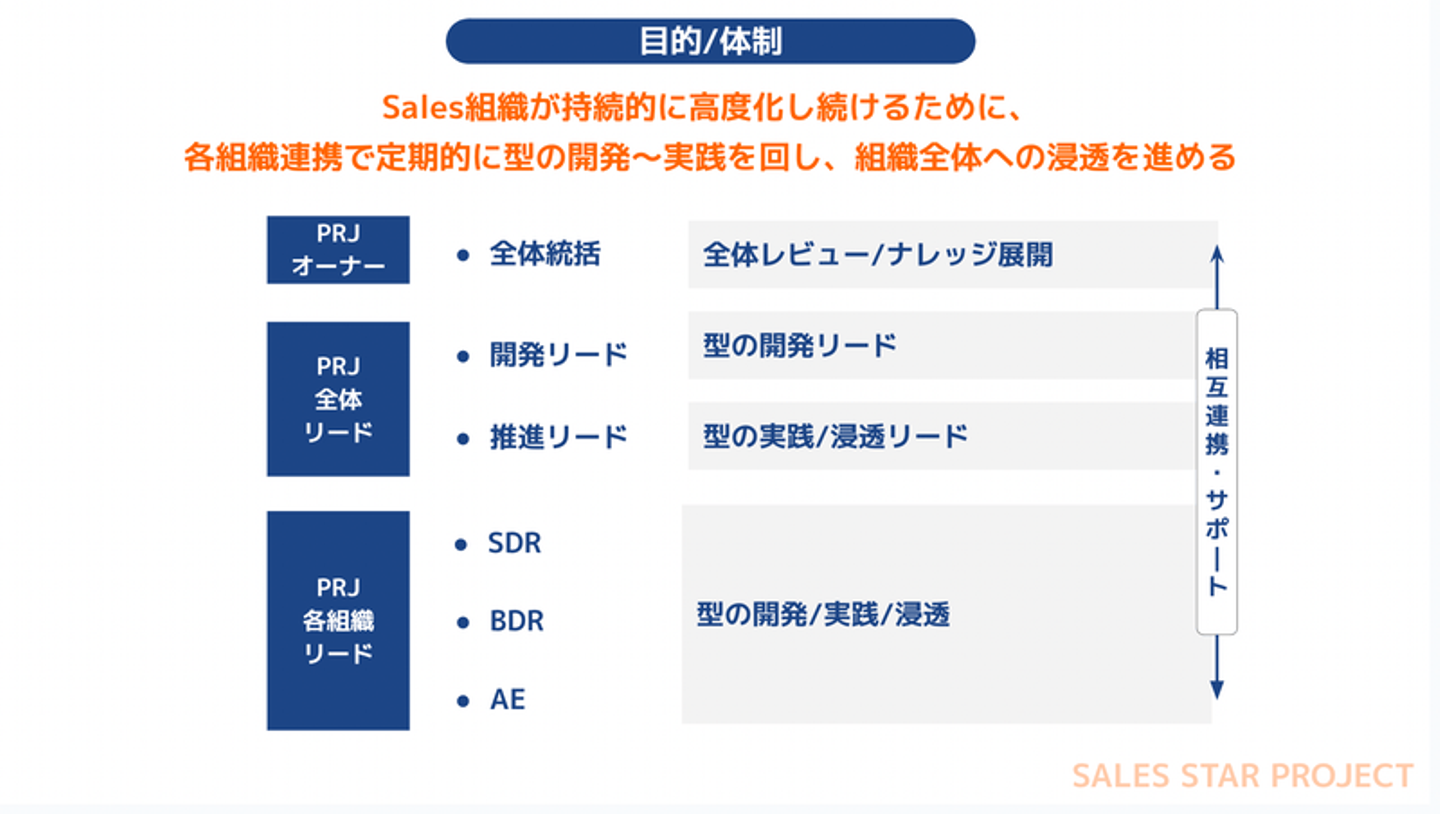 営業ナレッジをSales組織全体でシェアし、資料や商談スクリプトのブラッシュアップや提案の型化を進めていきます。