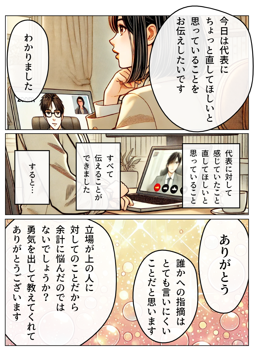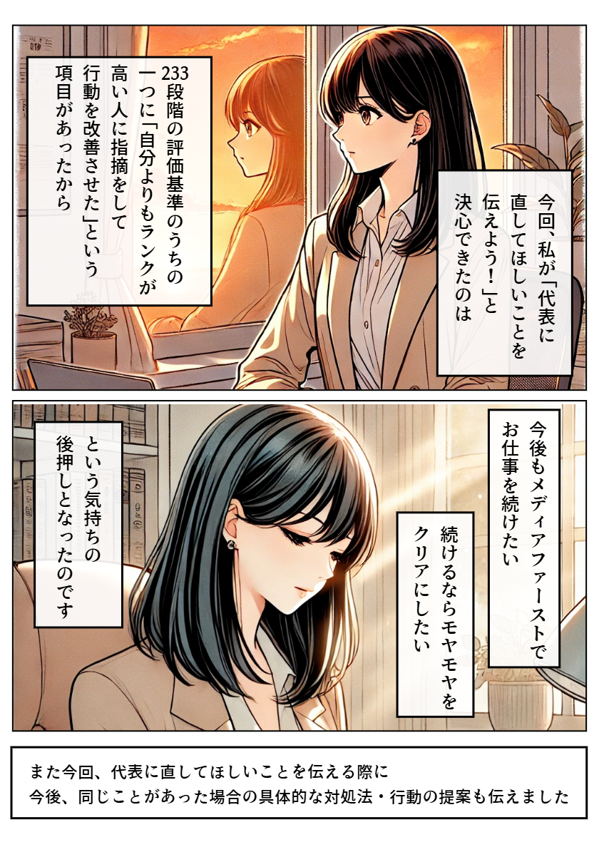 こんにちは!メディアファーストの採用担当です。今回は...!代表に対して「ちょっと直して欲しい」と思っていたことを勇気をだして言ってみた!についてお話をしようと思います。「直して欲しい」ことをお伝え...