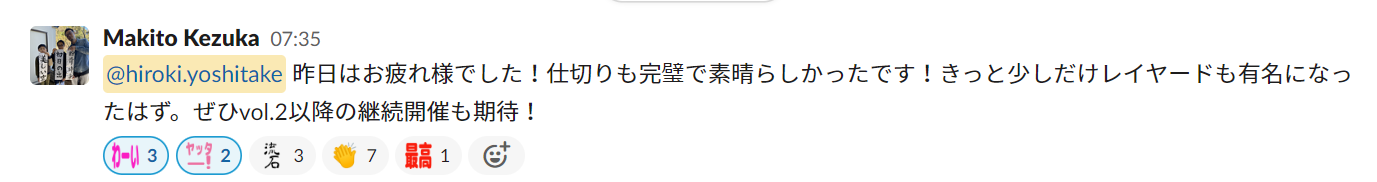 単純に認知度が低くて悔しい思いをしたことを払しょくするために開催したLT会だったが、なんだかんだで楽しくなってきて2回も開催することが出来た。今後はこれを会社の文化にしていけるように続けていけたらと思う。たぶん、それがDevRelっていうことなんじゃないかなと思う。しらんけど。そして、もちろん採用にもつなげたい。1回開催が5万くらいなので、20回中に一人採用出来ればトントン。そうすれば客観的にも理由が立つのでうれしい。