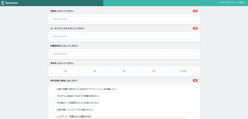 少しでも弊社について知ってもらいたいという思いから参加後アンケートを弊社プロダクトのWeb問診システムSymviewを編集して作成しました。