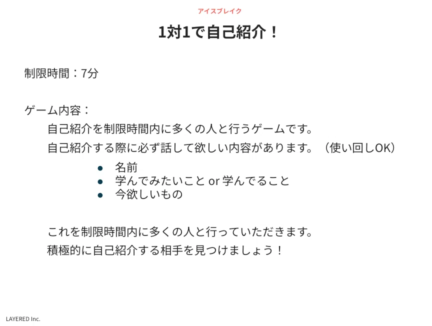 たった7分間の時間でしたが、場の緊張感がほぐれ、良い状態でハンズオンを迎えることができました。