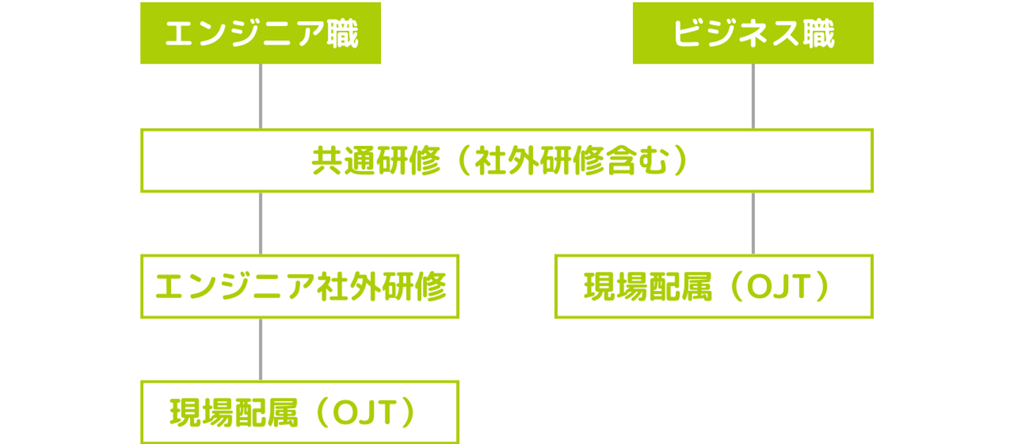メディアリンクでは、上図のように、職種によって研修の長さが異なります。