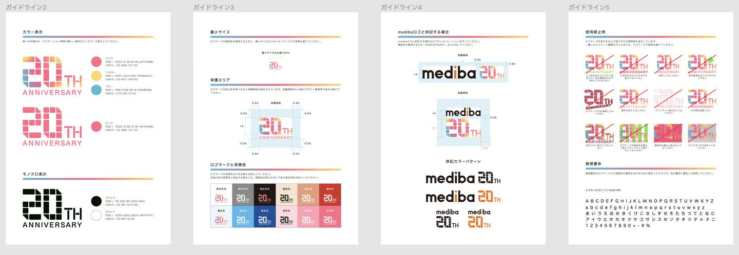また、ロゴデータを使用する上での注意点等のルールをまとめたガイドラインも、medibaロゴのガイドラインを参考に作成しました。