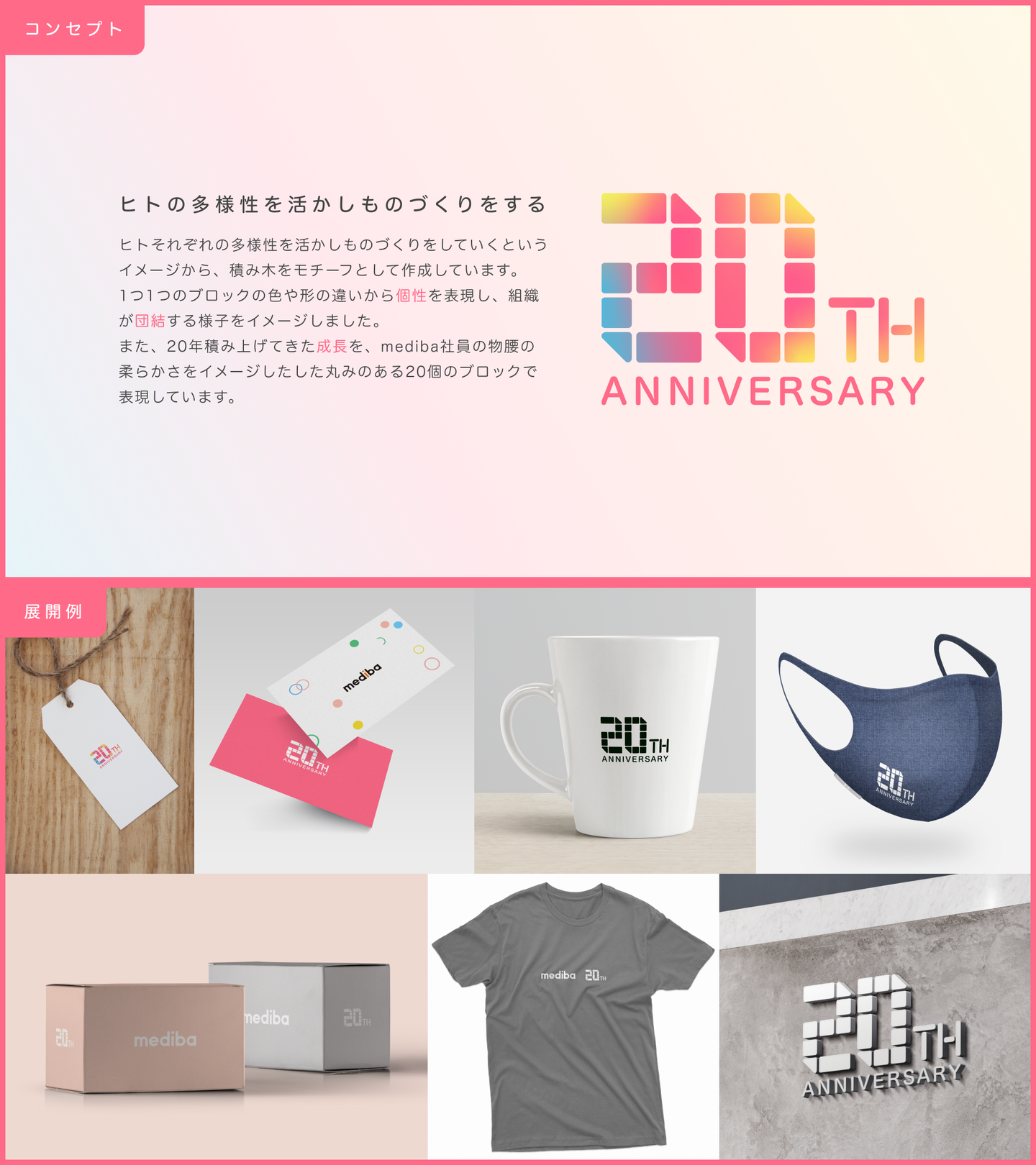 まだまだ駆け出しですが、medibaが創立20周年を迎えるにあたり記念のロゴを制作するということで、デザインを任せてもらうことになりました。