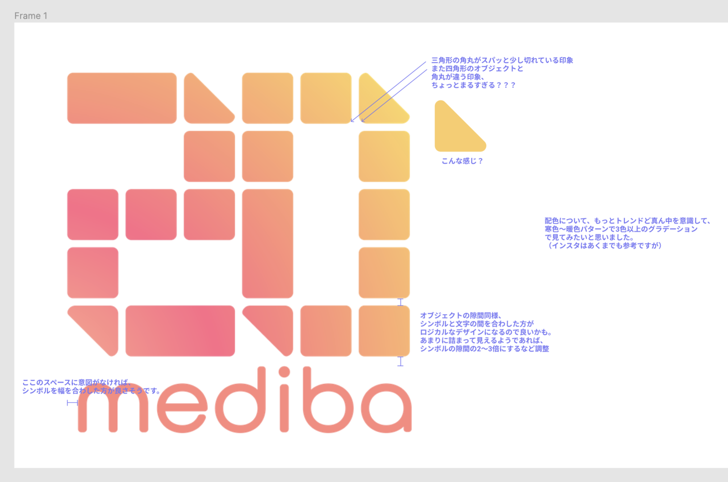 ロゴのモチーフを決めることに手こずってしまいましたが、それは普段からのデザインのインプット不足によるものだと気づきました。 - ラフはあくまでラフ