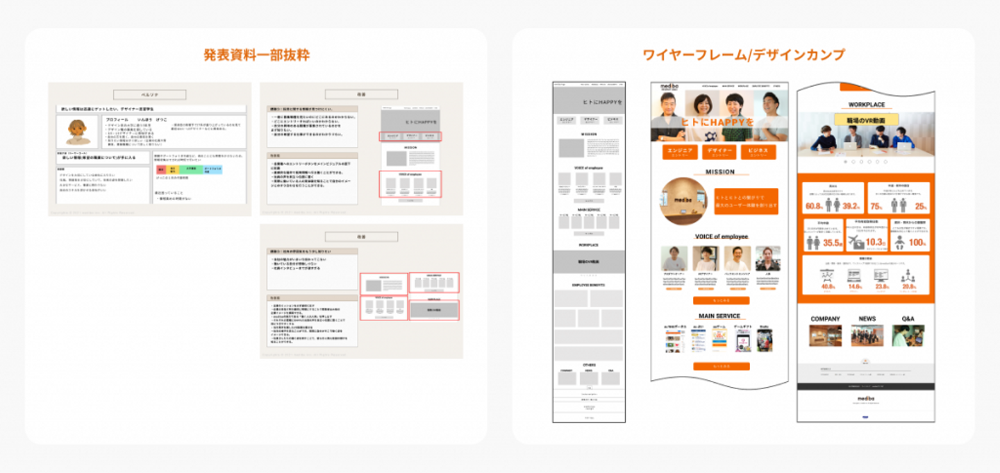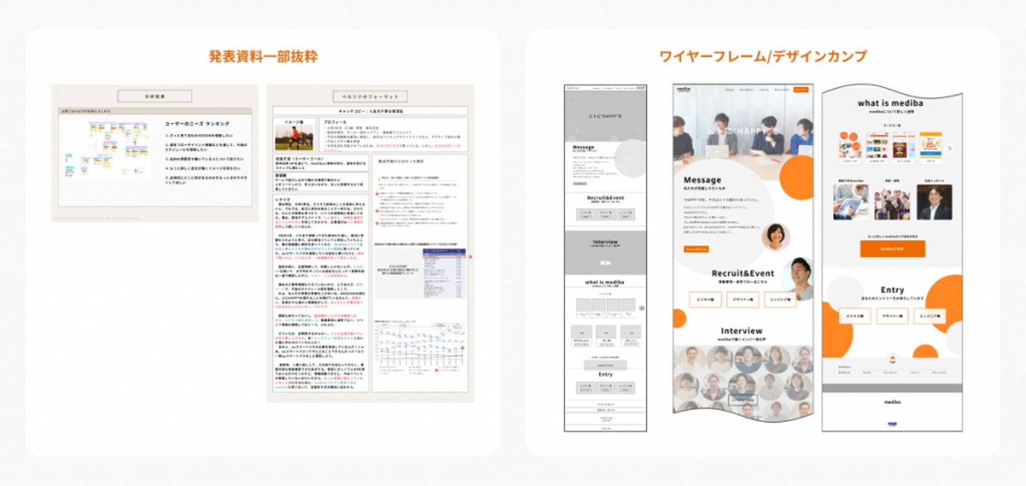 ▲発表用の資料の一部がこちら。資料、ワイヤー、デザインカンプが一式揃った形で発表できました!