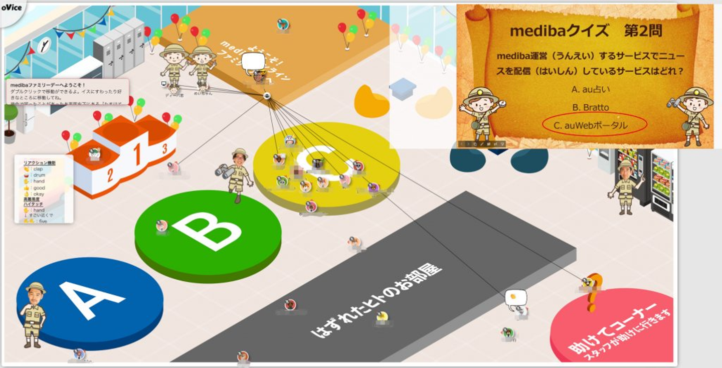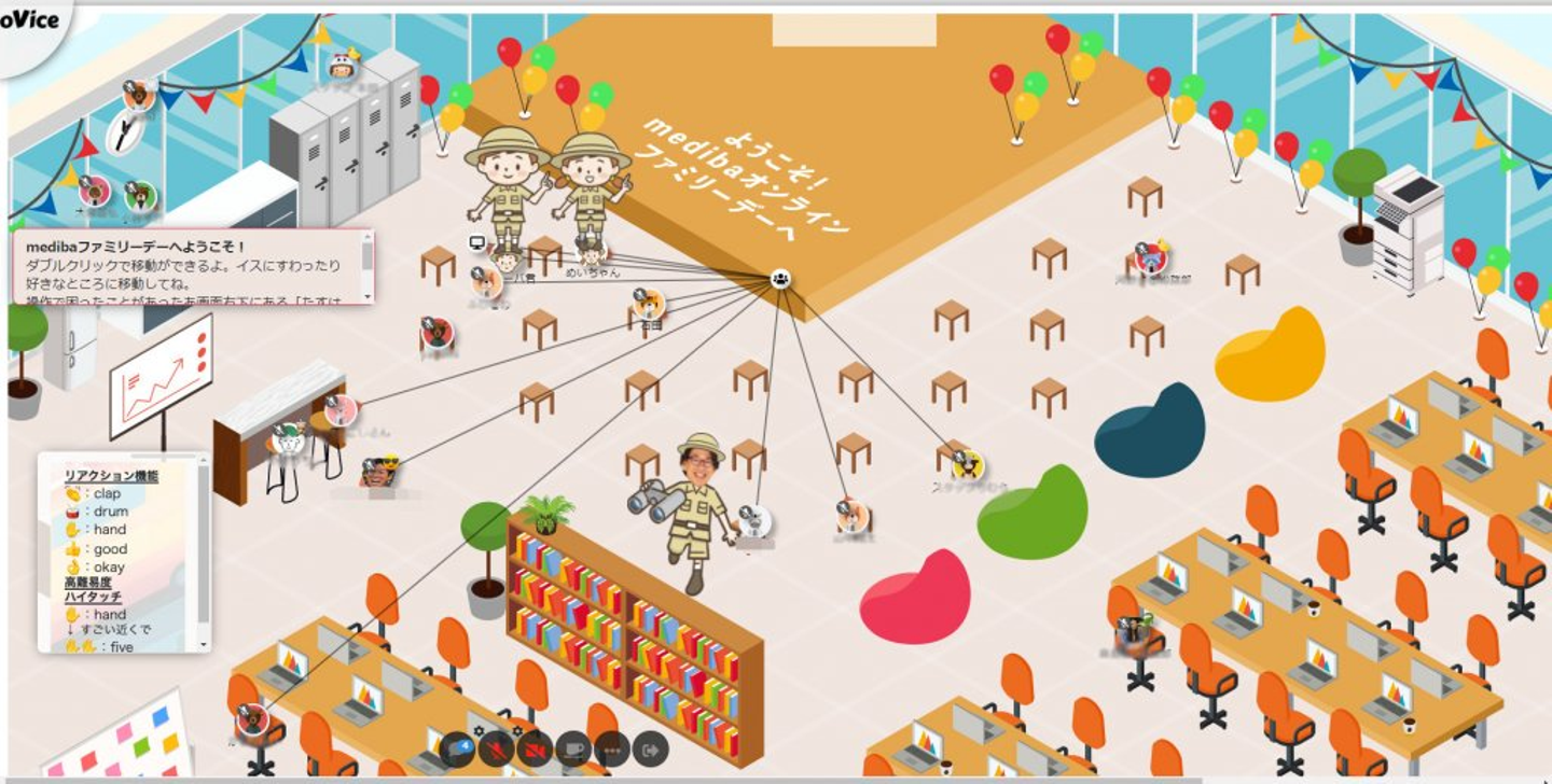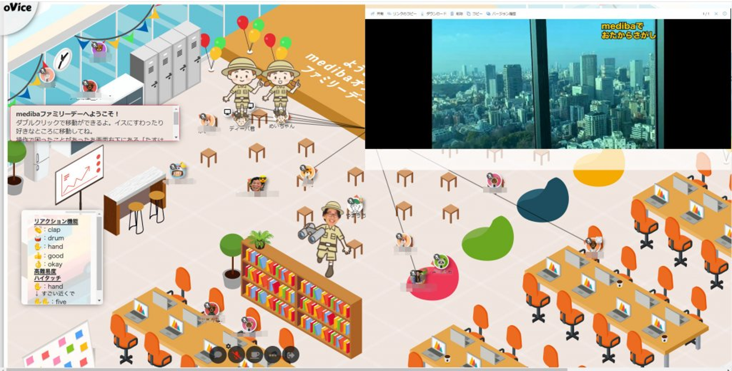 イベントの舞台となったのは、バーチャル空間作成ツール「oVice(オヴィス)」で作られた仮想medibaオフィス。