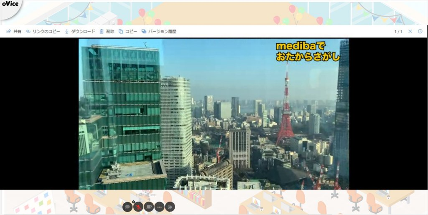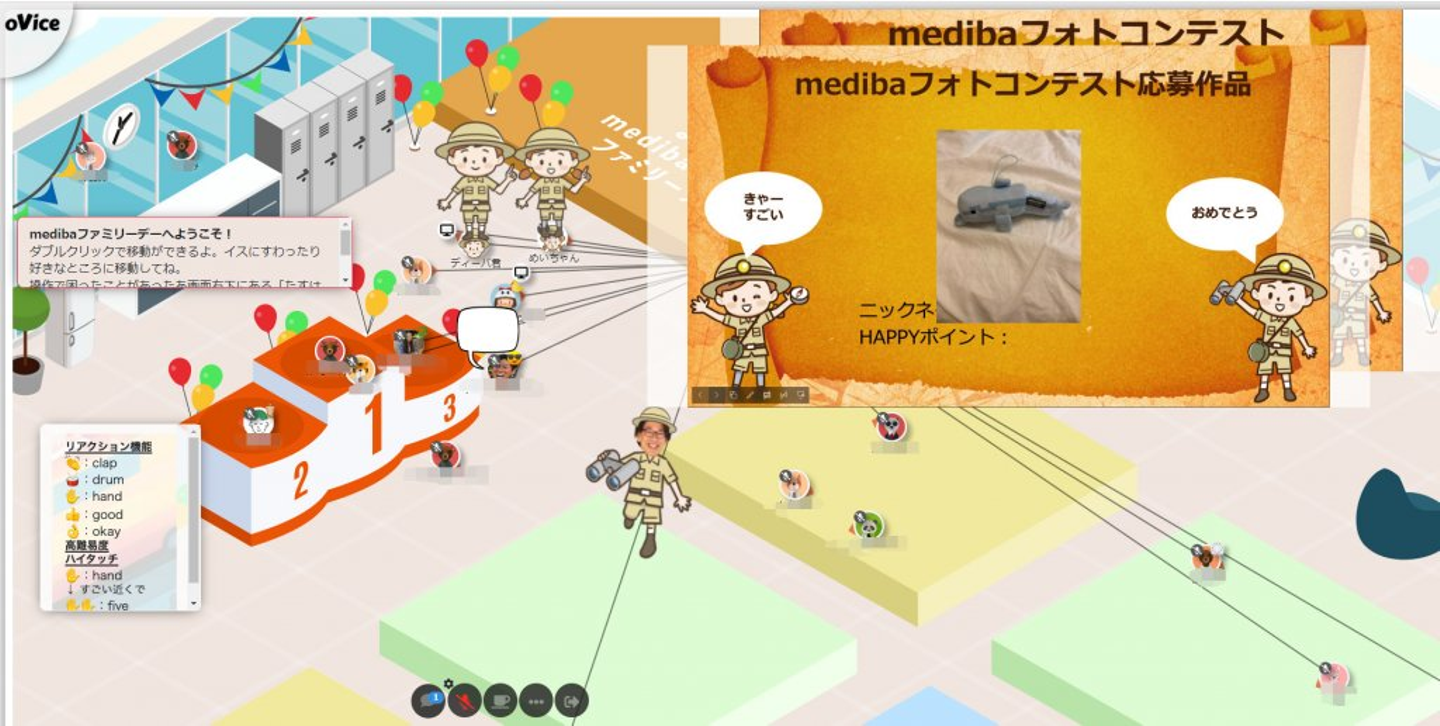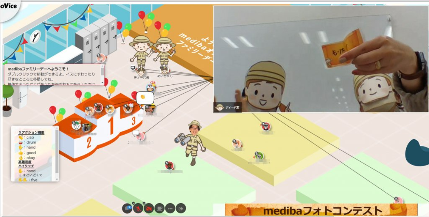 イベントの舞台となったのは、バーチャル空間作成ツール「oVice(オヴィス)」で作られた仮想medibaオフィス。