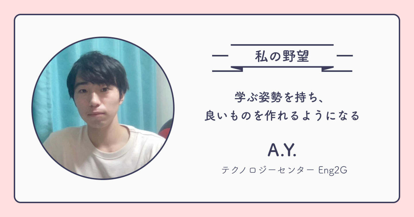 A.Y.:僕の野望は「学ぶ姿勢を持ち、良いものを作れるようになる」です。きっかけは、エンジニアで同期の柿本くんの影響ですね。入社時研修のときから彼の学習に対する姿勢には目を見張るものがありました。また、競技プログラミングへの参加や資格の勉強など、自分の好奇心に素直なところ。そして、学んだ知識を業務に活かして良いものを作ろうとする姿勢に「負けていられない」と思い、この野望を持つようになりました。