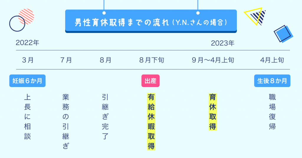 私も妻も実家が遠く家族に子どもの面倒を見てもらうことができないので、以前から子どもができたら育休を取得したいなと思っていたんです。それで実際に妻の妊娠がわかりマネージャーに相談したところ、「育休は取ったほうがいい」と後押ししてくれました。そのマネージャー自身も、男性ですが育休経験者だったんですよね。