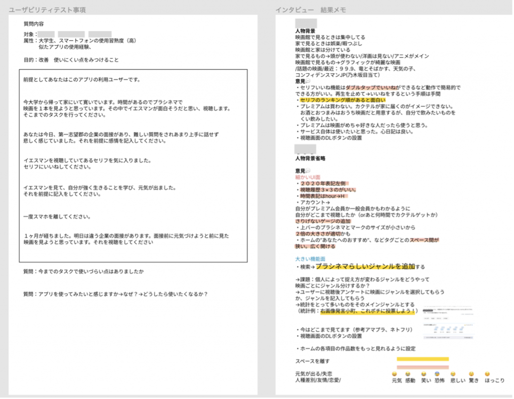 (画像:ユーザビリティテストで使用した質問シートと回答一覧)