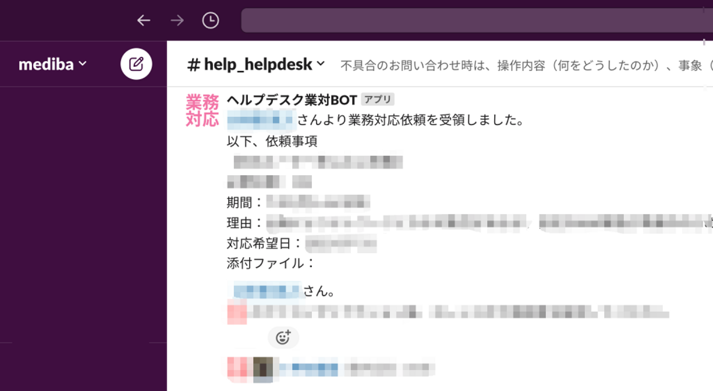 (画像:ヘルプデスクの『Slack』チャンネル)