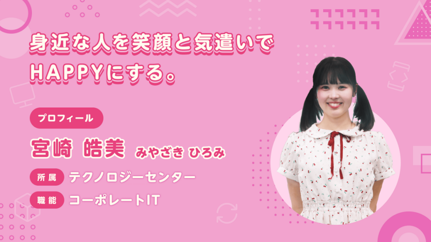 第3回は、コーポレートITの宮崎 皓美(みやざき ひろみ)とバックエンドエンジニアの田中 華穂(たなか かほ)。同じテクノロジーセンター配属で、まったく異なるいまを過ごすふたりのリアルをお楽しみください!