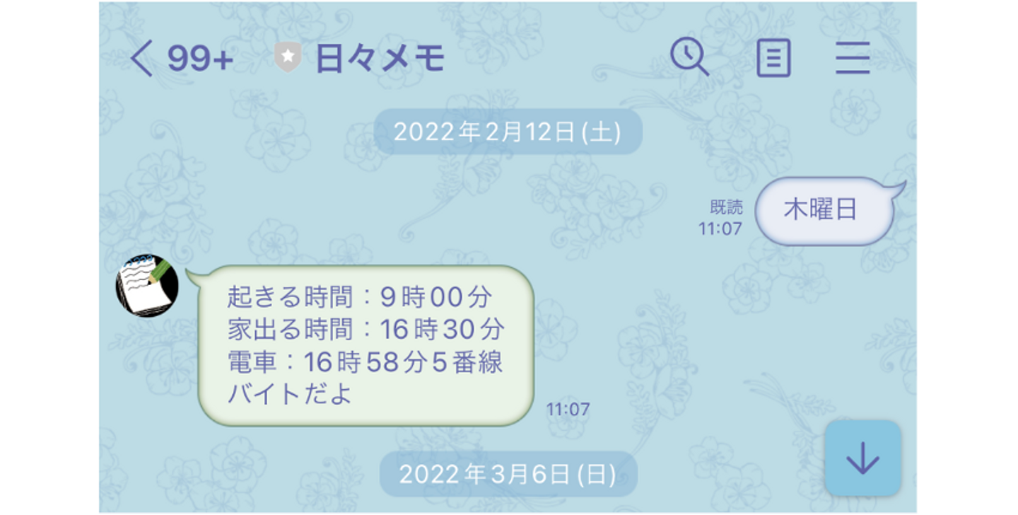 例えば、学生時代に作った「授業場所や、そこまでの移動手段、出発時間を一覧で出してくれるLINE bot」。私の開発のモットーは「面倒くさいことを楽にする」なんです。このLINE botで、授業毎に場所や移動手段が書かれた画像を漁る手間を省き、チャットで聞くだけで各情報を確認できたらいいなと思って作りました。
