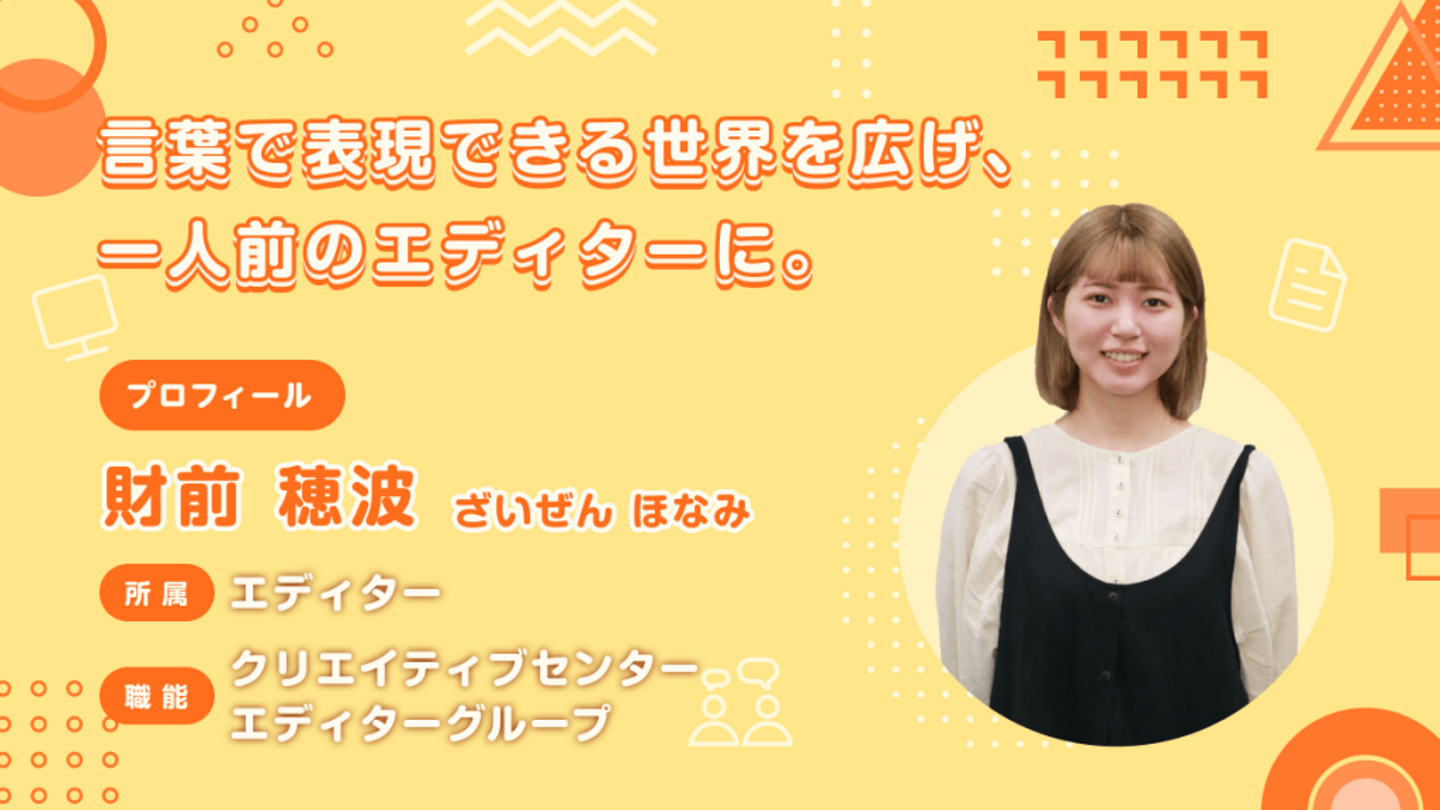 質とスピードを上げて早く一人前のエディターになりたいです。最近エディターグループには続々と新規案件が入ってきているので、みんな本当に忙しそうで。私が早く戦力になることで、メンバーの負担が減ったり、以前は余裕がなくて取れなかった選択肢を取れたりするんじゃないかなと思っています。