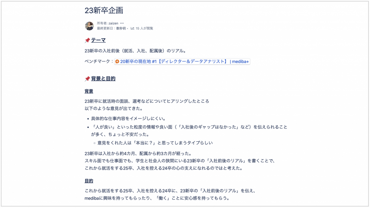 例えば今回の『教えて23新卒!』シリーズでは、23新卒インタビューの他に「メンター/上司からのヒトコト」を載せています。後者(べつの視点)があることで記事に客観性が生まれ、前者の説得力が増すと考えたんです。