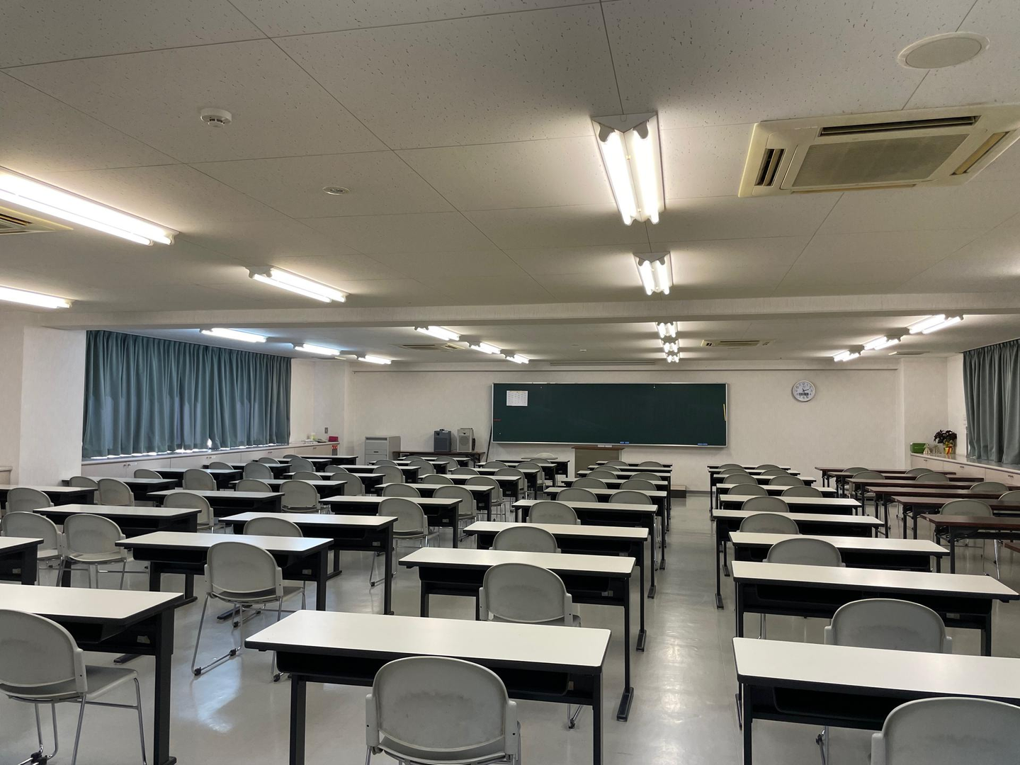 ☝こちらは大講義室です。模擬試験を行ったり、学年をまたいで実習の報告会・発表会を行ったりできます。