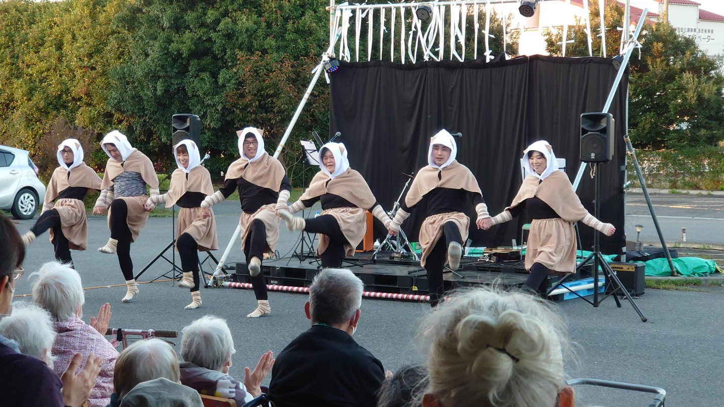 第2部は駐車場スペースに全員集まり、ステージ企画が開催されました。こうのすタンポポ翔裕園の職員や関東福祉専門学校の先生によるダンス、盆踊り、バンド、ソーラン節が次々と披露されました。