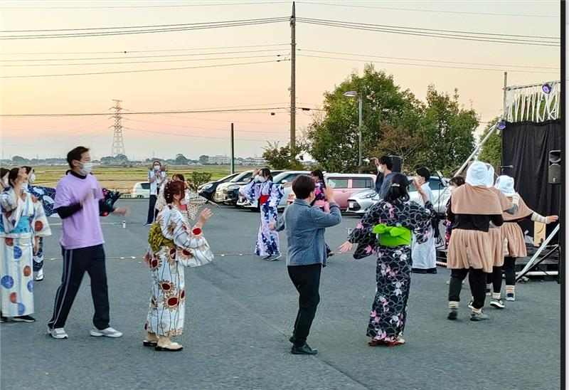 👆ご利用者様、関東福祉専門学校の先生や生徒さんも加わって、盆踊りの輪が徐々に広がりました👘