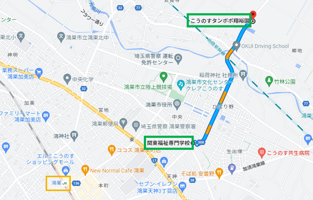 👆今回コラボしたこうのすタンポポ翔裕園と関東福祉専門学校は車で5分圏内という近さにあります。