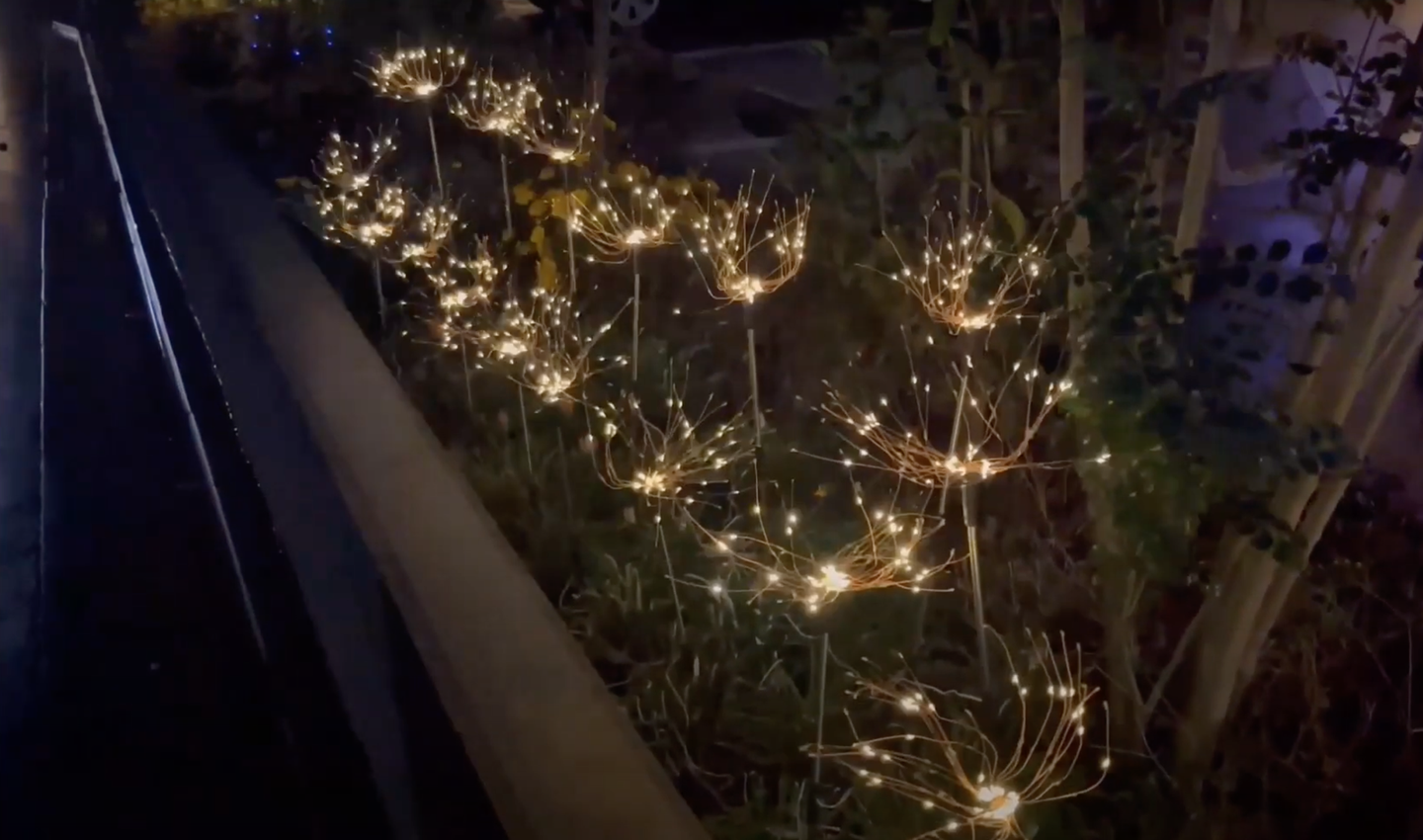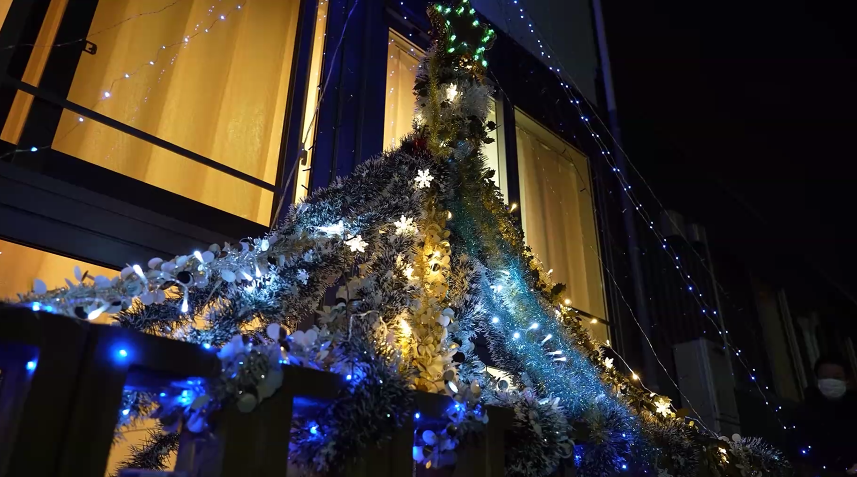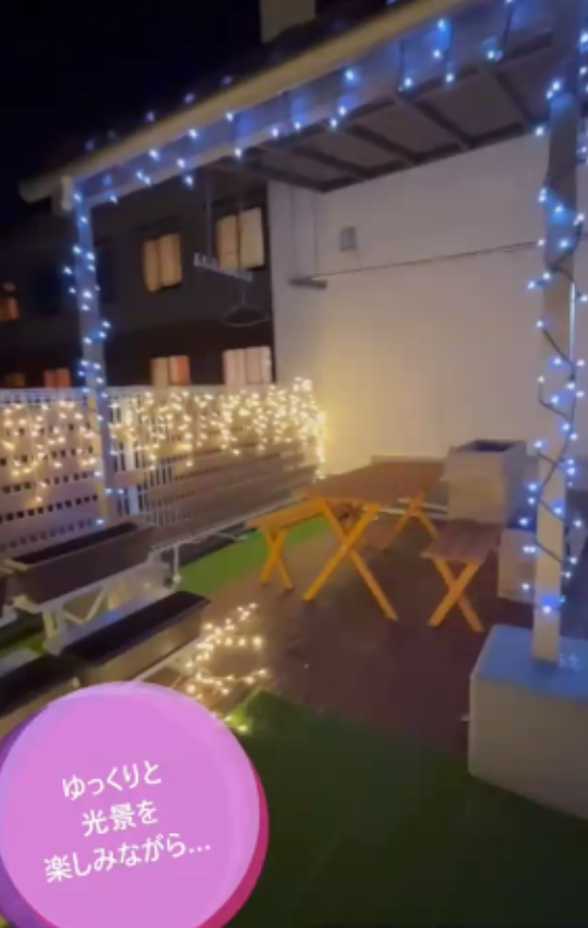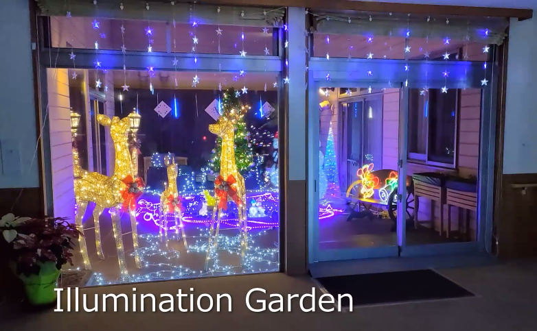 ご入居者さまがご逝去される前に地域の方々そして他のご利用者の方々に寄付をいただいたものです。イルミネーションだけでなくテラスもご利用者さまと一緒に作りました。これからも地域の皆さまにも楽しいでいただける地域づくりにしたいです。