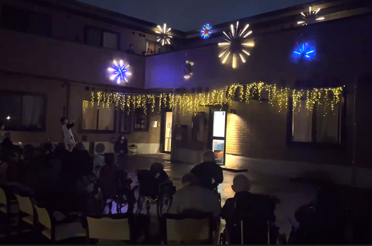 毎年11月の終わりから2月の終わりまでイルミネーションをしていて、ご利用者さまと一緒に楽しんでいます。職員の努力も評価していただきとても嬉しいです。今年は新型コロナウイルスの感染対策としてゾーニングが多かったのですが、入居者の部屋の窓やベランダ、入居されているユニットのリビングから見れるような配置をしていました。